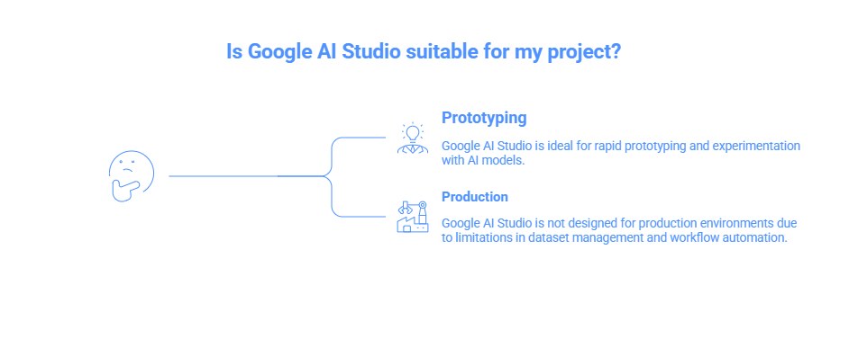 A: Google AI Studio focuses on rapid prototyping and prompt experimentation. Vertex AI is a full enterprise-grade machine learning platform that supports training, deployment, monitoring, and large-scale AI infrastructure within Google Cloud.